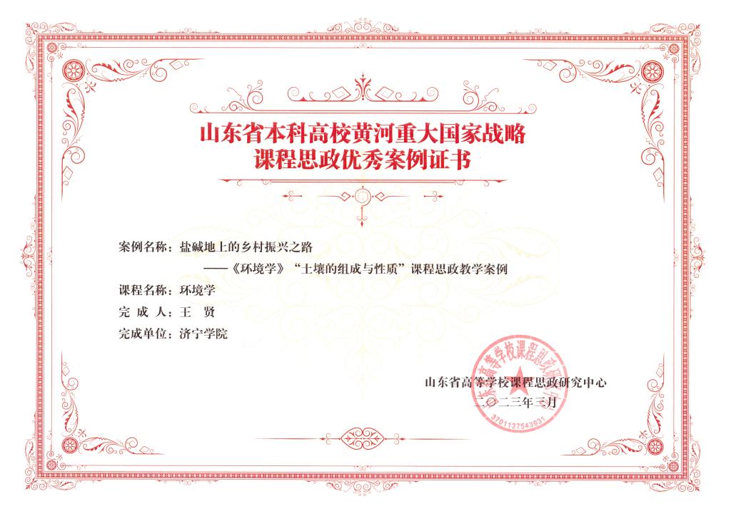 近日,山东省高等学校课程思政研究中心公布了《山东省本科高校黄河重大国家战略课程思政优秀案例》名单,工程学院王贤老师主持的《盐碱地上的乡村振兴之路——<环境学>“土壤的组成与性质”课程思政教学案例》和陈雪老师主持的《能源化工课程思政案例—以黄河流域煤化工产业转型升级为例》入选。
