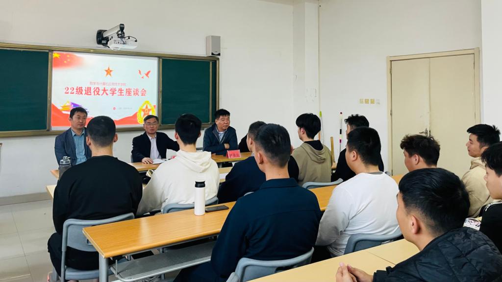 他们积极分享自己在部队的难忘经历以及感悟收获,交流返校后的学习、生活等情况,并对学院教育教学工作提出宝贵意见建议。学院领导和老师与退役学生亲切交谈,对于同学们遇到的问题耐心解答,并就国家对退役学生专项奖助学金资助政策、志愿者服务工作、实训、实习就业、考研等方面进行了交流。