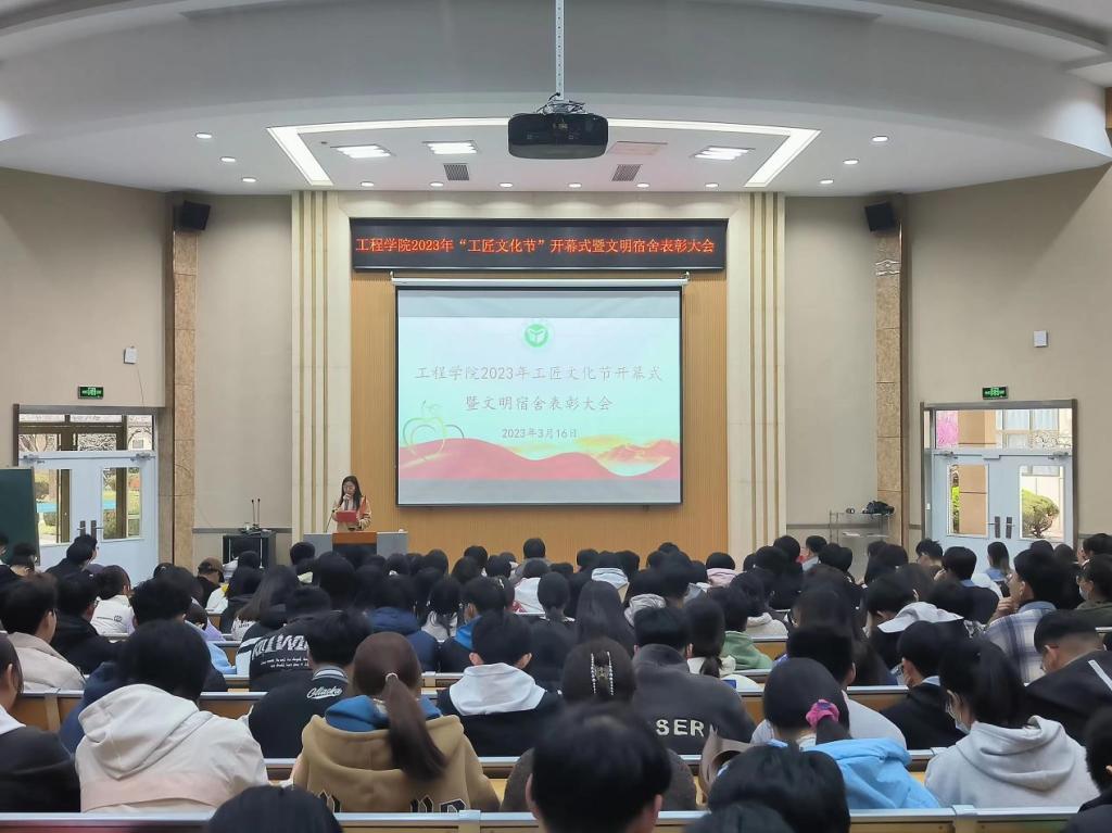 为深入贯彻落实习近平总书记对于工匠精神的重要指示,强化学生对工匠精神的理解和内化,构建“工匠文化”,弘扬“工匠价值”,培养和造就高素质工匠人才 ,3月16日下午,工程学院于八号楼报告厅举行了2023年“工匠文化节”开幕式暨文明宿舍表彰大会,工程学院党委书记唐秋晶、副书记许言强、全体辅导员出席本次大会。
