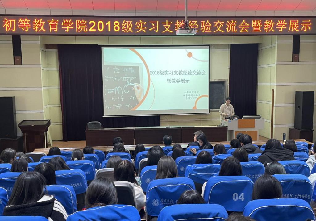为进一步做好教育见习与实习支教工作,帮助2019级学生提前了解熟悉教育见习和实习支教工作内容,3月23日,初等教育学院在学术会堂举办2018级实习支教经验分享会暨教学展示。院长刘秋香、副院长杨波、学生管理科和教学科研办公室负责人、相关教师以及2019级全体学生参加了本次活动。
