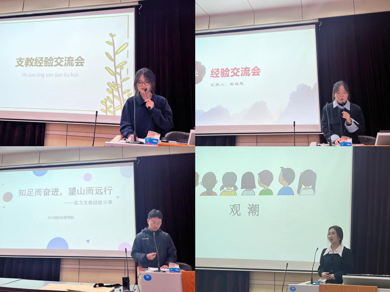 实习支教是师范生的必修课,此次交流,将会给接下来的教育见习和下学期实习支教的同学们更多信心和帮助,帮助他们提高教育教学能力水平,顺利完成教育见习和实习支教,在成为教师的道路上更进一步,也为学院师范专业人才培养质量提供了有力保障。