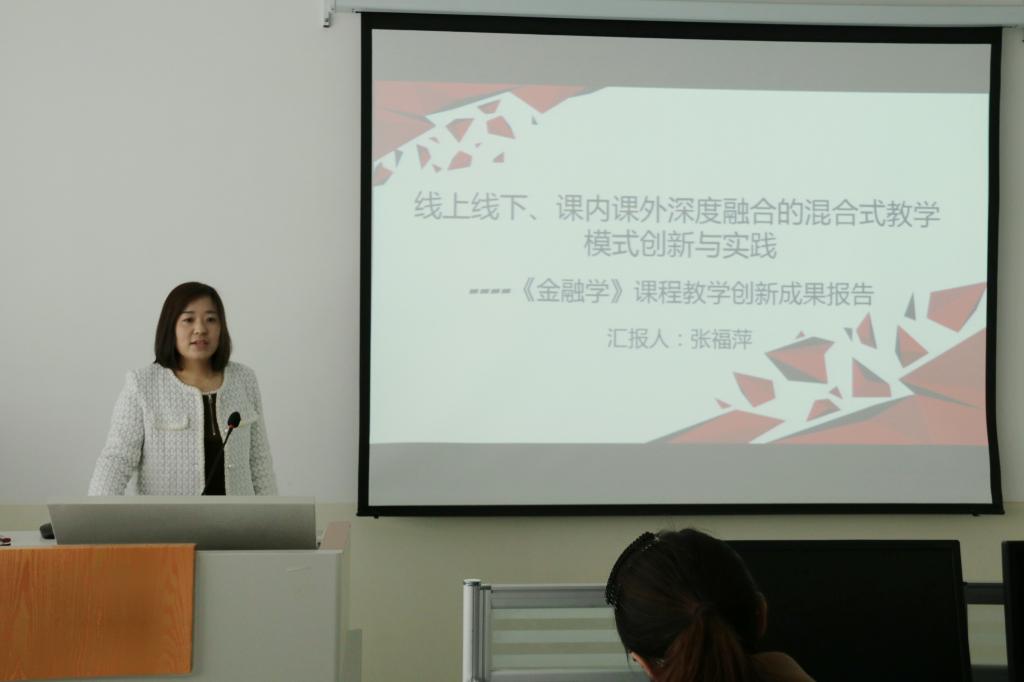 3月29日,张福萍老师为青年教师分享了《线上线下、课内课外深度融合的混合式教学模式创新与实践——《金融学》课程教学创新成果》。她从教学目标设计、教学方法选择、教学过程设计等方面介绍了自己的教学设计思路,然后进行了教学活动展示。