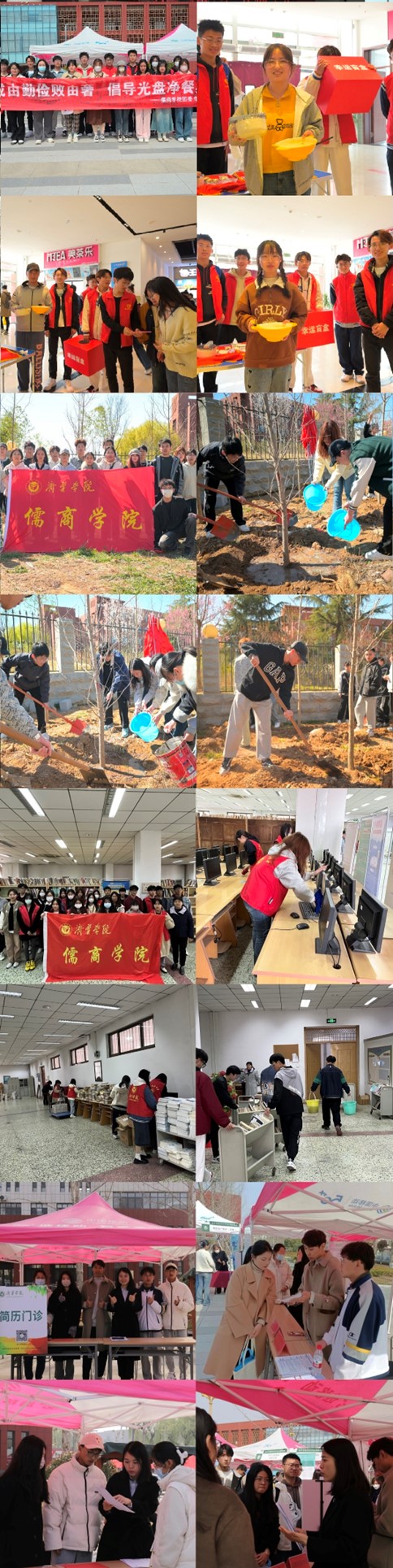 “雷锋精神,人人可学;奉献爱心,处处可为。”儒商学子从身边小事做起,于细微处播撒下雷锋精神的星星之火。餐厅里,志愿者们发起“成由勤俭败由奢,倡导光盘净餐桌”倡议活动,通过寻找“光盘达人”、现场知识问答、抽取幸运盲盒等形式,引导同学们厉行勤俭节约,反对铺张浪费。濯缨湖畔,志愿者们参加校园植树活动,他们扶苗、挥锹、培土、浇水,栽种下一棵棵小树,为初春的校园增添了丝丝绿意。图书馆里,志愿者们认真清扫书库,将书籍分批整理、归类入库,为师生营造干净整洁的书香世界。校园招聘会现场,大学生职业发展协会和法律咨询协会入驻“简历门诊”,帮助同学们修改简历,分享求职技巧,助力毕业生就业。