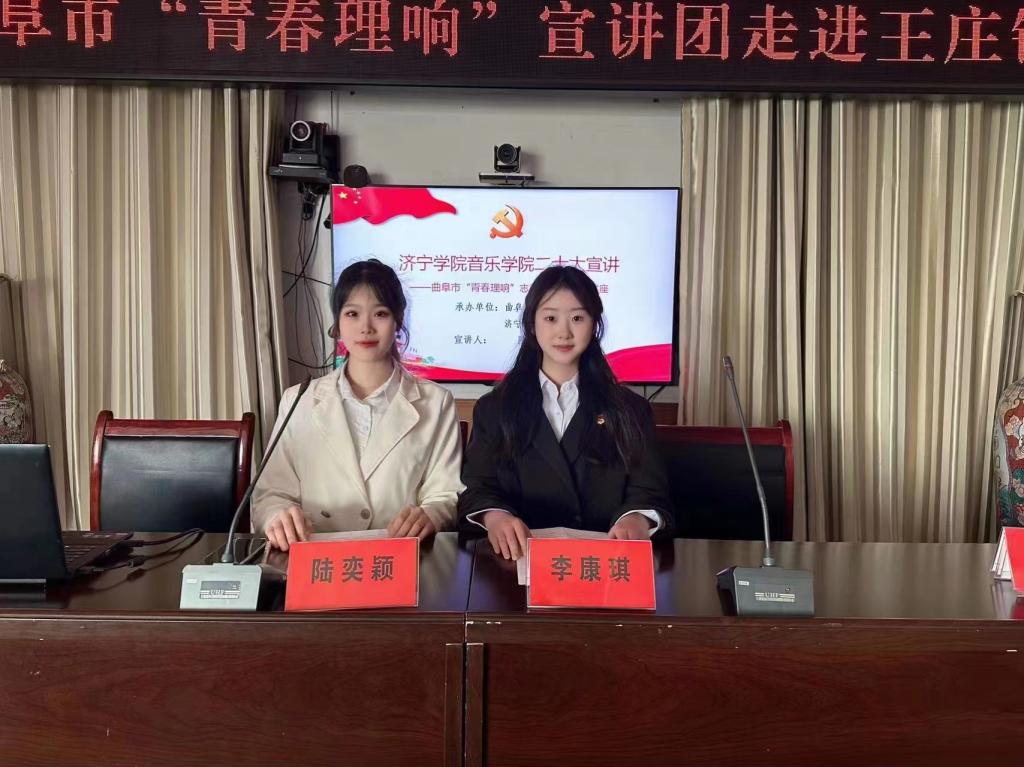 为全面学习宣传贯彻党的二十大精神,深入贯彻新发展理念,聚智聚力推动镇街振兴发展,3月10日、3月13日,音乐学院陆奕颖、李康琪两位同学协助校团委、马克思主义学院在曲阜市小雪镇、王庄镇,为当地党员干部开展党的二十大主题宣讲,生动地为当地党员干部讲解了伟大建党精神,激发了当地干部的工作干劲,让先进典型事迹在党员间入脑、入心、入行。