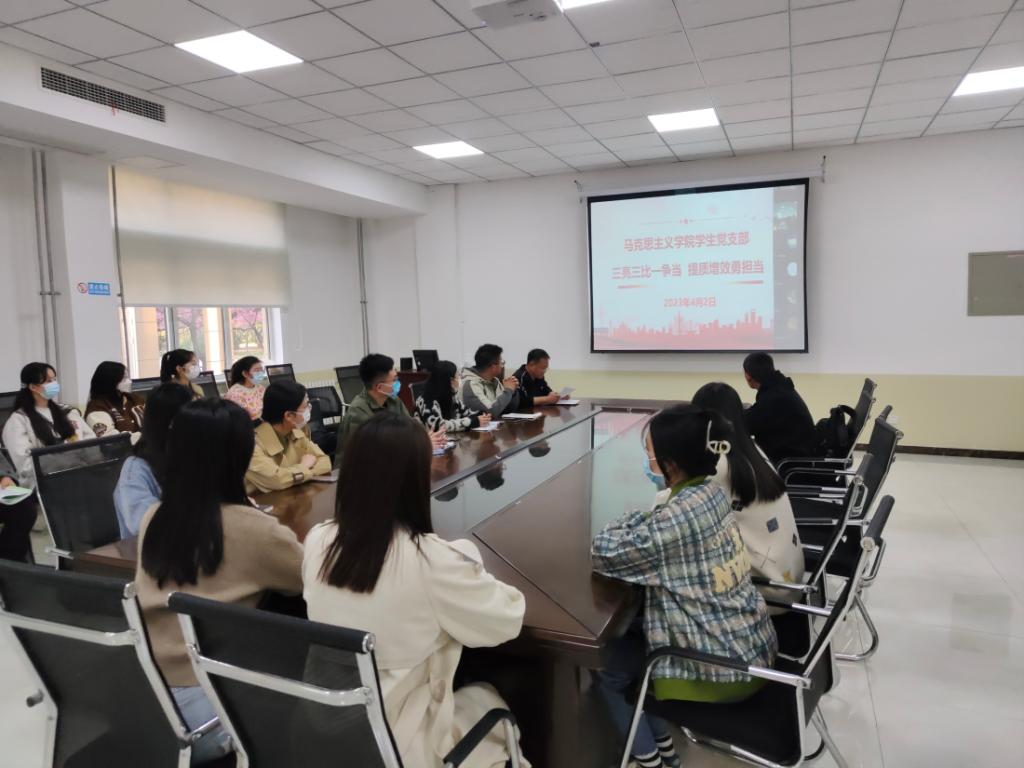 为进一步激发师生党员干事创业的热情,比学赶超的激情和担当作为的豪情,4月2日,马克思主义学院学生党支部召开全体党员会议,传达3月30日学生党支部委员会关于开展“三亮三比一争当”活动的会议内容要求,详细学习了《亚星在线登录官网在全校党员中开展“三亮三比一争当”活动的工作方案》,就下一步如何开展“三亮三比一争当”再强调。