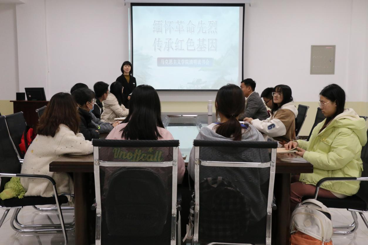 4月4日晚,马克思主义学院开展以“缅怀革命先烈,传承红色基因”为主题的清明节读书分享活动。杨光老师和中国化马克思主义读书协会成员、马克思主义学院部分读书爱好者参加本次清明读书分享会。