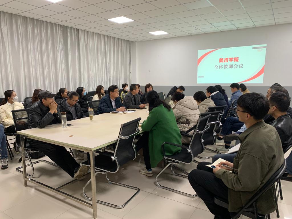 4月4日下午,美术学院在曲阜校区会议室召开全体教师会。院长张继华、党委副书记孔瑞及学院全体教职工参加会议,会议由学院党委书记杨晓青主持。