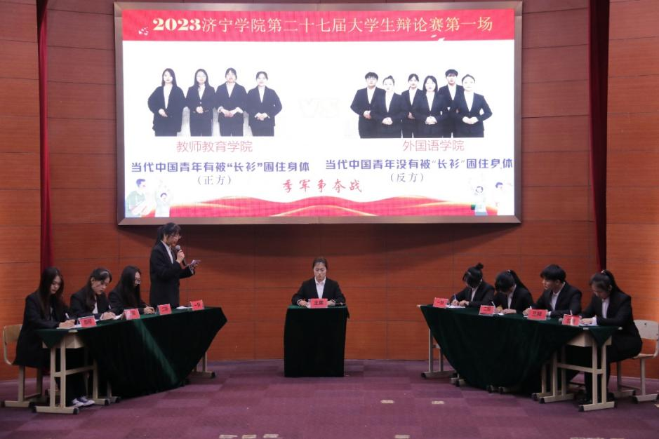 本届辩论赛历时一个月,经历了初赛、复赛、半决赛三轮选拔。通过激烈角逐,儒商学院、数学与计算机技术应用学院、教师教育学院和外国语学院成功晋级四强。决赛分为冠军争夺赛和季军争夺赛两场,本次决赛的辩题是“当代中国青年有被‘长衫’困住身体还是没有被‘长衫’困住身体”。