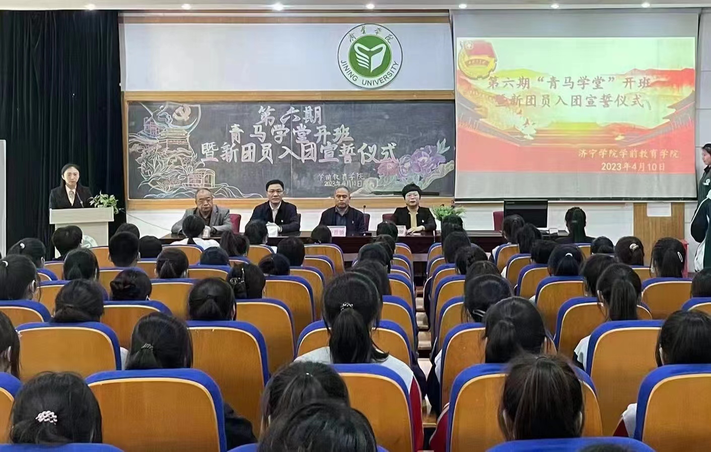 为深入学习宣传贯彻习近平新时代中国特色社会主义思想和党的二十大精神,培养坚定的青年马克思主义者,4月10日下午,学前教育学院在学术报告厅隆重举行第六期青马学堂开班暨新团员入团宣誓仪式。学前教育学院党委成员、57名新发展的团员及全体“青马学员”参加了活动。仪式由团委副书记于思思主持。