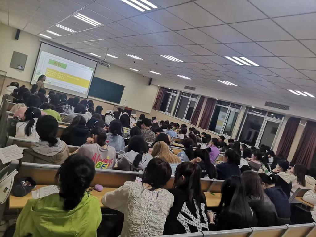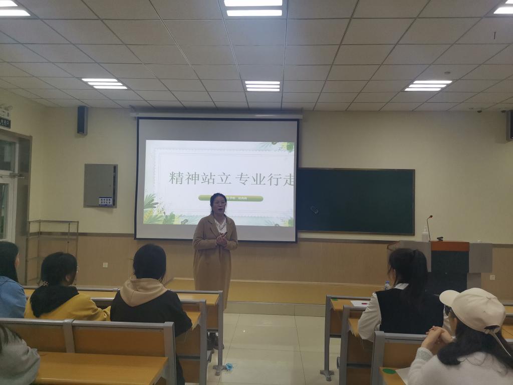 4月12日晚,外国语学院邀请曲阜东方学校德育部主任杜冉冉老师在3号楼C101作了题为“精神站立 专业行走 ”的讲座。讲座由外国语学院教师姜璨主持,曲阜东方学校副校长杜放,部分教师代表,2021级、2022级本专科英语师范专业学生参加了此次活动。
