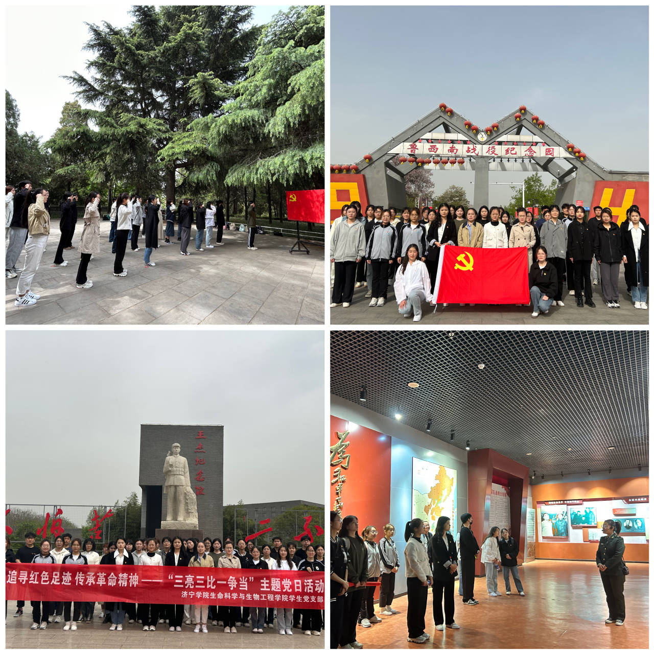 学生党支部赴羊山红色教育基地开展追寻红色足迹,传承革命精神—“三亮三比一争当”主题党日活动。在烈士公墓前,全体党员向革命烈士敬献花篮、鞠躬致敬、哀思缅怀;高举右手、紧握拳头面对鲜红的党旗庄严宣誓,重温了入党誓词,表达了为党事业奋斗终身的决心。在鲁西南战役纪念馆,大家认真聆听了鲁西南战役的详细介绍,近距离观看了一幅幅历史珍贵图片、一件件战役实物陈列,深刻感受到革命先烈投身革命、奋勇战斗、不畏强敌的英雄事迹。最后,来到王杰纪念馆,大家详细听取了王杰同志的生平和舍己救人的英雄事迹,对“三不伸手”、“两不怕”精神有了更加深刻的认识。此次党日活动,对全体党员是一次深刻的党性教育和灵魂洗礼,大家纷纷表示要继承先烈的革命意志,发扬革命先辈的革命精神,传承红色基因,以“三亮三比一争当”的实际行动告慰革命烈士,担当青年使命。