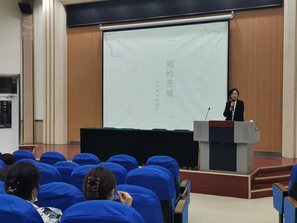 为深入推进《孔孟之乡地域文化翻译》课程教学改革,加深学生对中华优秀传统文化的了解,4月17日晚,外国语学院邀请书香曲阜儒学体验基地首席儒学讲师李学欣做了题为《相约圣城》的传统文化讲座。外国语学院近500名师生参加,讲座由课程负责人颜冬梅老师主持。