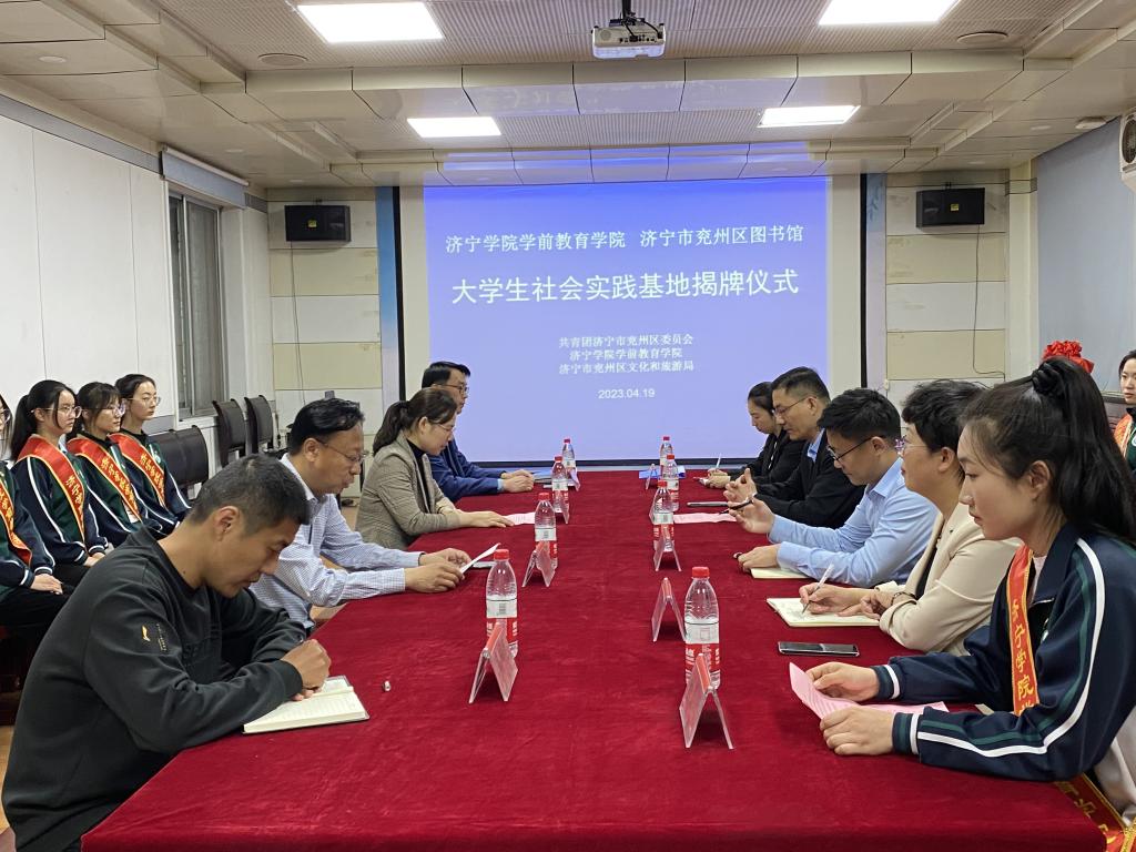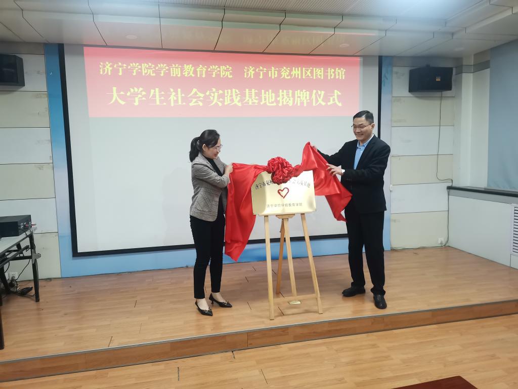 在世界读书日到来之际,4月19日下午,学前教育学院联合兖州区图书馆举行社会实践基地揭牌仪式,仪式在区图书馆活动室举行。兖州区文化旅游局副局长郭川、共青团兖州区委副书记桑承波、兖州区图书馆馆长汪亚军、学前教育学院副院长王朝杰、党委副书记丰琳琳、基地共建主要负责同志及学生志愿者代表出席了仪式。活动由兖州区公共文化服务中心主任刘辉主持。