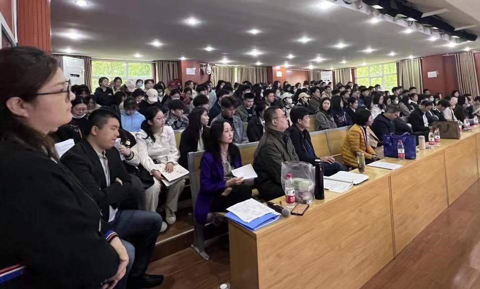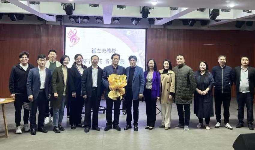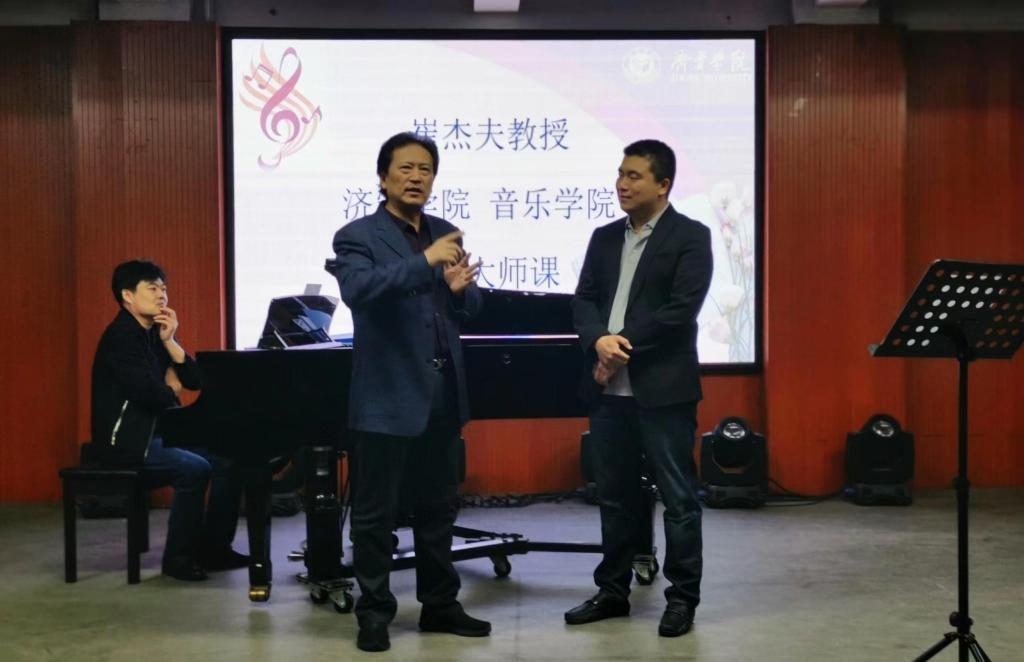 4月23日下午,音乐学院邀请哈尔滨音乐学院声歌系崔杰夫教授在音乐学院排练厅举办声乐大师课。大师课由音乐学院副院长杨昉主持,音乐学院党委书记徐俊凯、副院长赵小林、声乐教研室全体教师以及200余名学生参加了崔教授的授课。