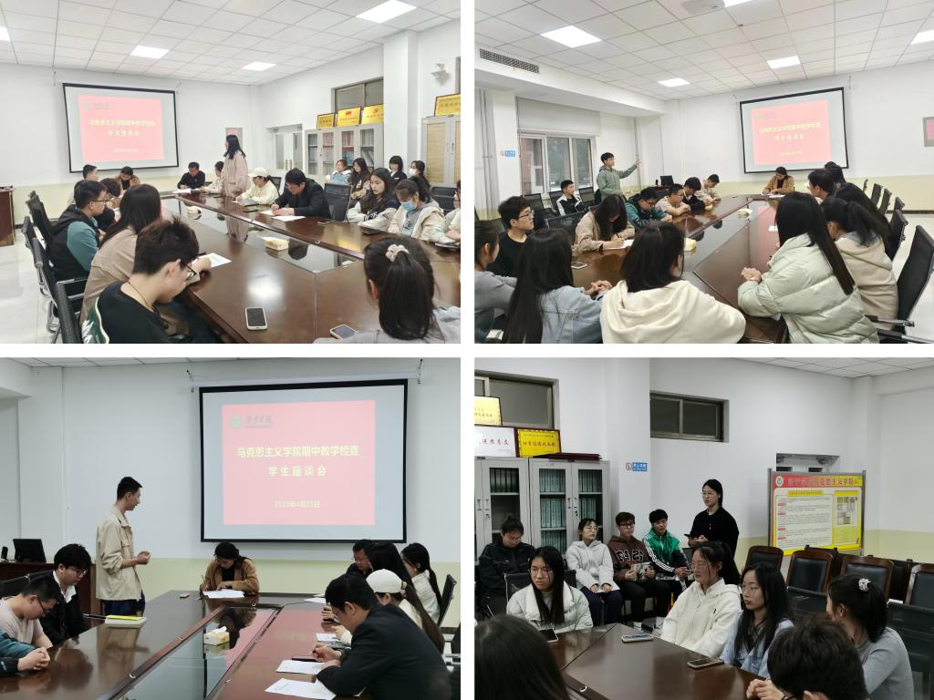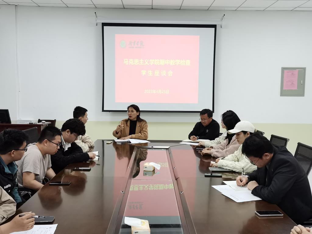 4月25日晚,马克思主义学院召开了期中教学检查学生座谈会。学院副院长周争艳主持座谈会,教师李盎、陈奕然、辅导员姚海生、付茹雪、学生代表参加了座谈会。