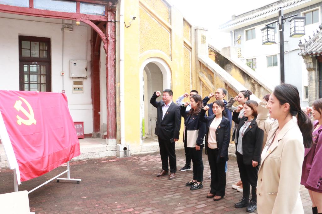 在讲解员的带领下,师生们先后参观了学校大礼堂、工字形教学楼、校史展览馆、中共省立二师支部纪念馆等,追寻“红二师”先辈们的奋斗足迹,深情缅怀革命先烈的光辉业绩。一幅幅图片、一段段文字、一座座建筑真实生动地再现了“红二师”的光辉革命历程,深刻感悟了革命先辈们坚守理想信念、践行初心使命的崇高精神,在抚今追昔中坚定忠诚担当的革命意志。参观学习结束后,全体党员面向鲜红的党旗,重温了入党誓词,以铿锵有力的宣誓声,表达不忘初心、牢记使命的信念和决心。