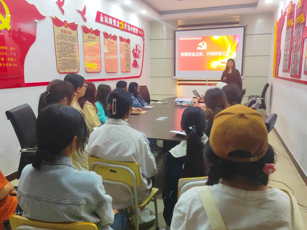 《中华人民共和国保守国家秘密法》规定,一切国家机关、武装力量、政党、社会团体、企事业单位和全体公民都有保守国家秘密的义务。因此保密工作既是责任又是义务,人人充当保密者,国家安全则永驻。活动伊始,同学们共同学习《保密法》,观看保密教育专题宣传片,随后赵娜结合党史学习,以科学家郭永怀的感人事迹深刻阐述保密工作的重大意义。在战火纷飞的旧中国,郭永怀在青年时期便在心中埋下了科技救国、科技报国的种子,这也使得他一路求学,为我国第一颗热核导弹试验成功奠定了坚实的基础。直到生命的最后一刻,郭永怀首先想到的不是个人安危,而是誓死保护好事关国家安全的绝密资料,对我们青年而言,郭永怀的先进事迹是很好的党性教育、科普教育和爱国主义教育,对弘扬和培育民族精神、践行社会主义核心价值观具有重大意义。最后,赵娜呼吁学生代表们,作为一名新时代青年,要有责任与担当意识,要认真学习习近平新时代中国特色社会主义思想,学习保密法律法规和现代科学技术知识,努力提高自身思想政治素质和实践能力。