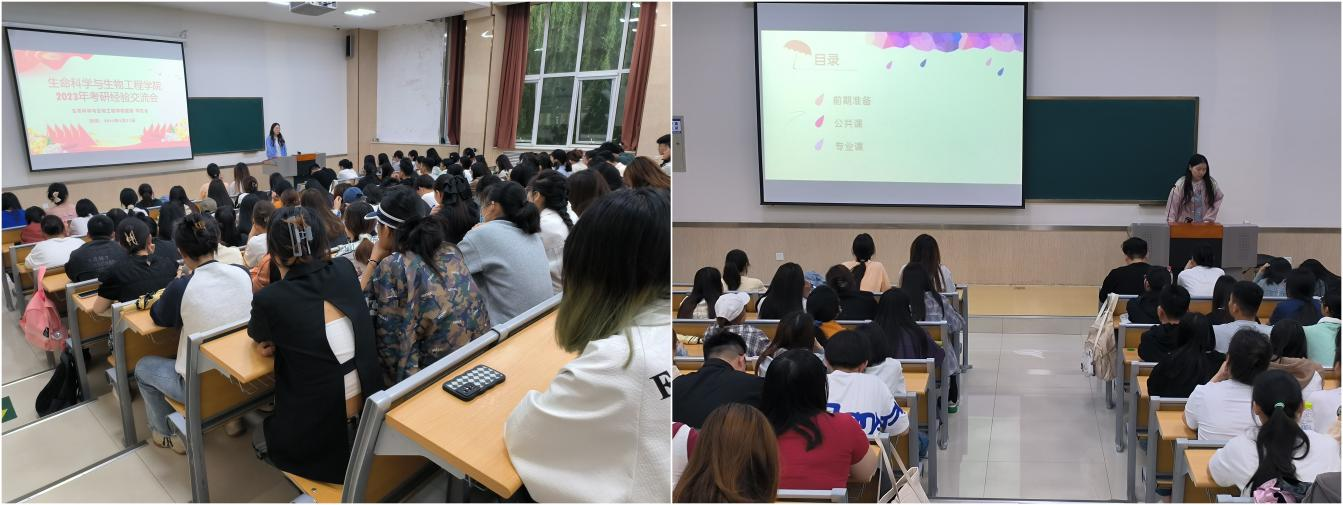 5月21日晚,生命科学与生物工程学院团委、学生会在9号楼D201教室成功举办考研经验交流会,邀请被录取为硕士研究生的9名同学作经验分享。该院学生会执行主席曲梦婷主持交流会,近200名同学参加。
