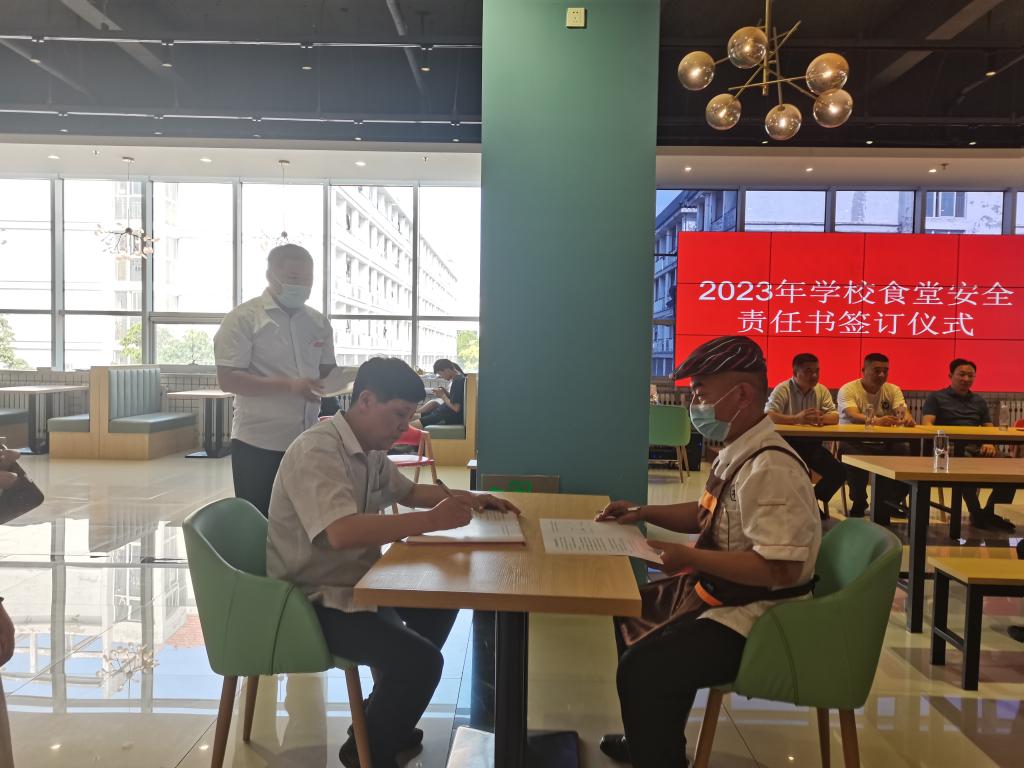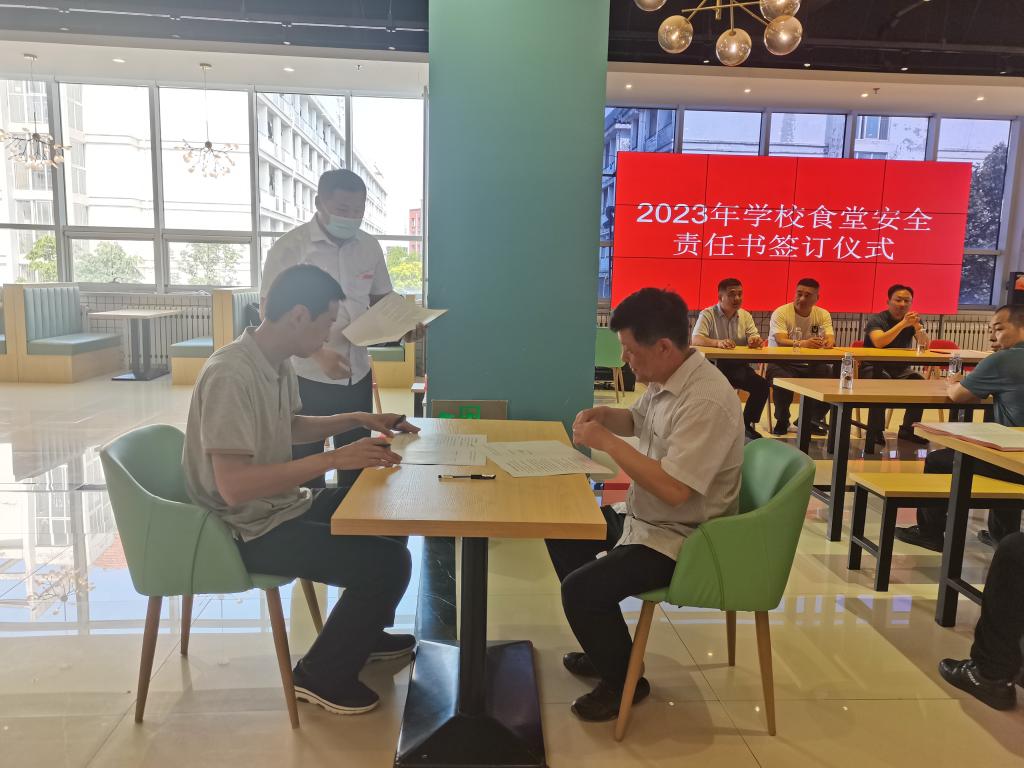 随后,刘忠建代表学校与各食堂负责人现场签订了食堂安全责任书,各食堂负责人与各班组长也分别签署安全责任书。