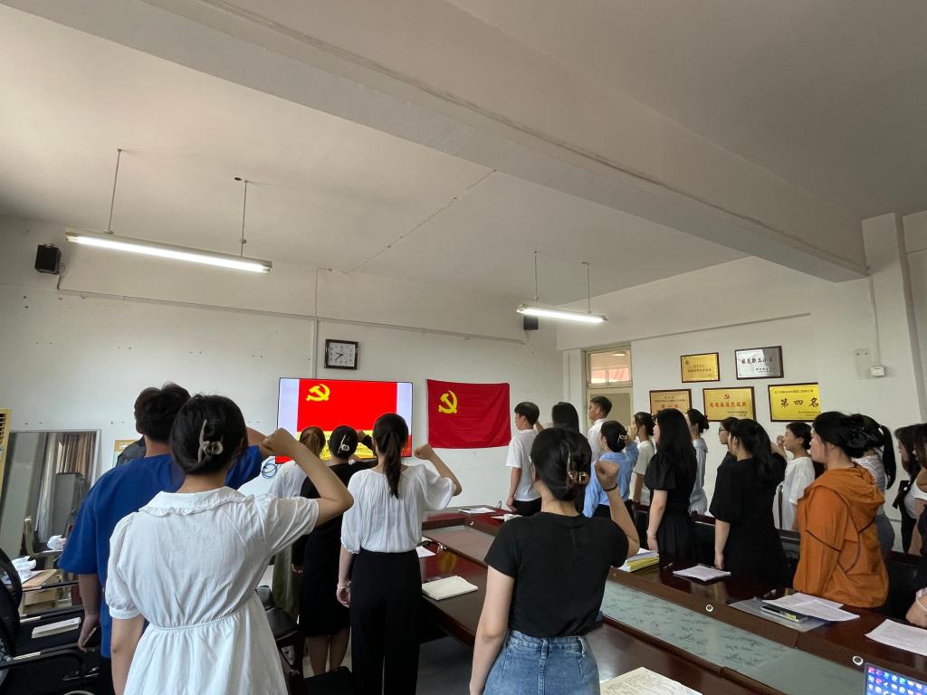 为进一步教育引导新发展党员铭记入党初心、强化党员意识、坚定理想信念,6月9日,音乐学院学生党支部在举行了新发展党员入党宣誓。会议由学生党支部书记张倩主持,学院党委书记徐俊凯、党委副书记岳娜以及20名预备党员参加了仪式。