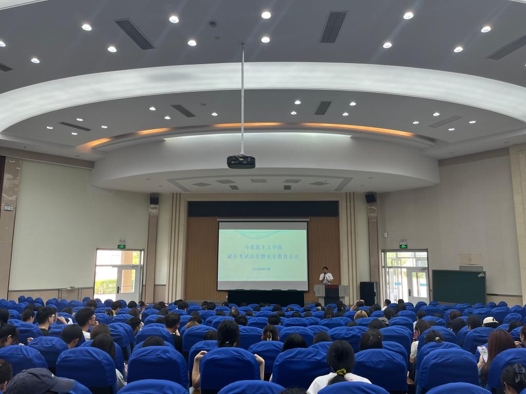 为加强学院学风建设,帮助学生端正考试态度,严肃考风考纪,增强学生安全意识,6月14日下午,马克思主义学院在三号楼报告厅召开诚信考试动员暨安全教育会议。马克思主义学院副院长周争艳出席会议并做诚信考试动员。辅导员姚海生、付茹雪,马克思主义学院2021、2022级全体学生参加会议。会议由姚海生主持。