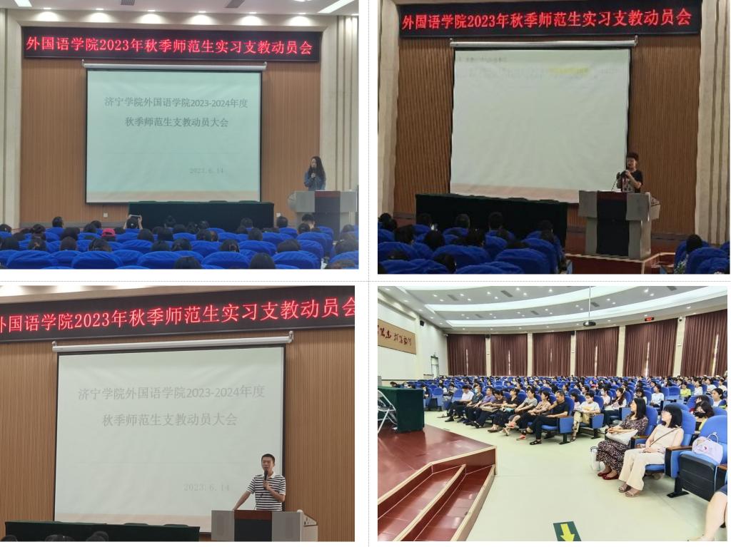 为扎实做好2023年秋季学期师范生实习支教工作,6月14日上午,外国语学院在3号楼报告厅召开实习支教动员会。副院长张颖、办公室主任闫彩霞、实习支教指导老师、辅导员、2021级小学英语教育专业和2022级英语师范(专升本)专业的354名学生参加会议。会议由辅导员冯占磊主持。