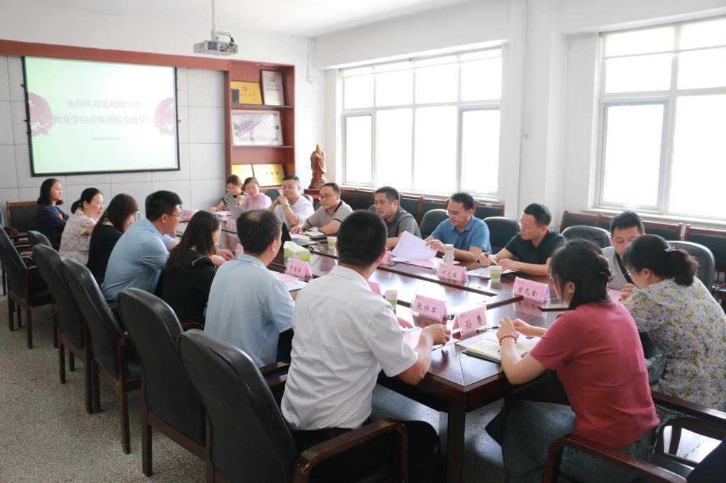 6月26日,北部湾大学教育学院院长周顺平、党委副书记陈鹏、副院长尹闯等一行8人到访教师教育学院,教师教育学院党委书记刘勇、副院长贾英侠、党委副书记杜鹃及教研室主任等教师代表参加了座谈。