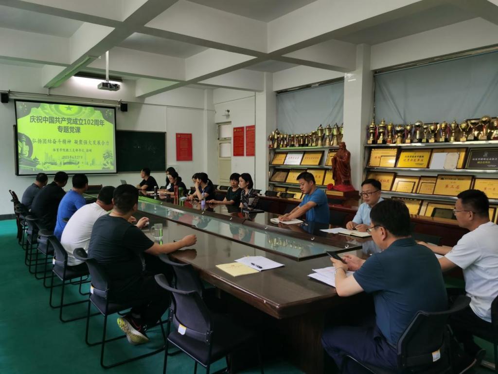 为庆祝中国共产党成立102周年,进一步增强党组织的凝聚力与战斗力,持续发挥党建工作的引领作用,6月27上午,体育学院教工党支部在二楼会议室召开庆祝中国共产党成立102周年专题党日活动。会议由教工党支部书记徐刚主持,支部班子和全体党员参加活动。