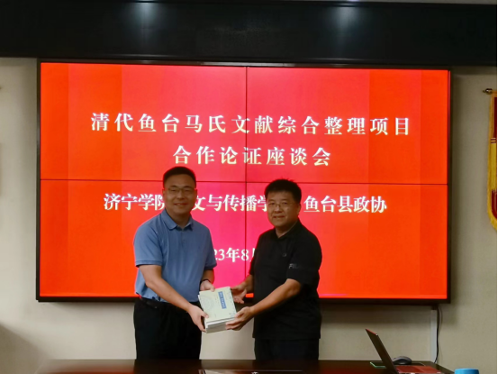 论证座谈会上,王永超详细介绍了清代鱼台马氏文献的基本情况,论述了开展清代鱼台马氏文献综合整理项目的背景和意义,并对人文与传播学院从事该项目研究的硬软件基础、特别是专家团队情况作了说明。他表示,鱼台马氏家族文献是乡邦文献的重要组成部分,是地方历史的见证,通过对文献开展综合性整理工作,有助于更好地传承发展中华优秀传统文化,为后人留下宝贵的历史资料。王成广等鱼台县领导高度认同开展清代鱼台马氏文献综合整理项目的意义,认为该项目最终成果将在弘扬民族精神、传承家族文化、发掘地方文化资源、助力地方文化建设等方面发挥积极作用。王成广建议,在文献整理研究过程中要充分挖掘马氏家族文化中的核心价值,注重学术性和实用性相结合,为推动中华优秀传统文化传承和发展贡献力量。双方就项目报批以及文献整理研究、成果出版等事宜进行了深入务实的探讨,并达成合作意向。