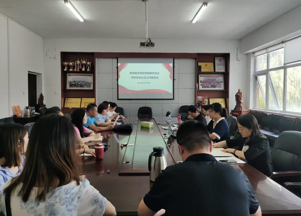 8月30日上午,教师教育学院在院会议室A211召开学前教育专业师范认证工作推进会议。教师教育学院党委书记刘勇、副院长贾英侠、学前教育专业负责人李南及自评报告撰写团队的全体成员参加。会议由贾英侠主持。