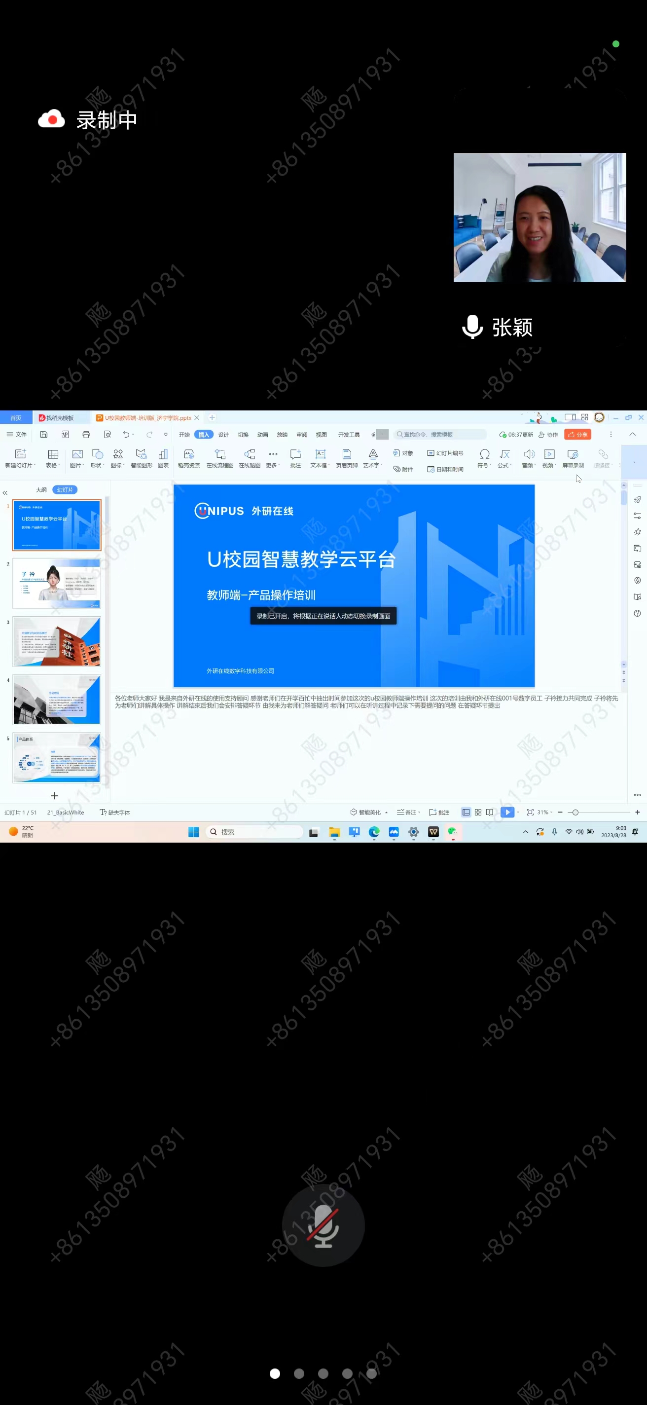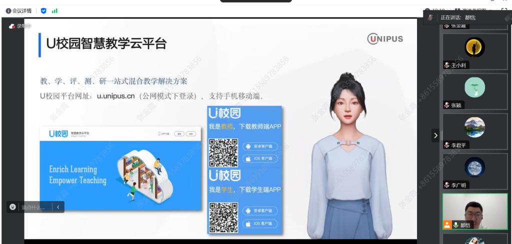 首先,外研在线数字科技有限公司支持中心主任都恺总体介绍了外研社U校园平台,数字员工子衿从U校园辅助混合式教学、在线教学平台操作指南、在线教学管理系统和作业管理与考试发布流程等方面,详细介绍了外研社U校园平台管理员端、教师端和学生端的使用步骤并与老师们沟通交流。随后,上海外语教育出版社数字编辑王培培老师结合《全新版大学进阶英语》,从教学系统平台管理、作业布置与考试管理、形成性评价等方面介绍了外教社WE Learn随行课堂及TOP课件智慧教学资源并进行了问题答疑。培训结束后,老师们就如何把教材平台软件运用到大学英语考核过程性评价,推行全过程学业评价展开讨论。