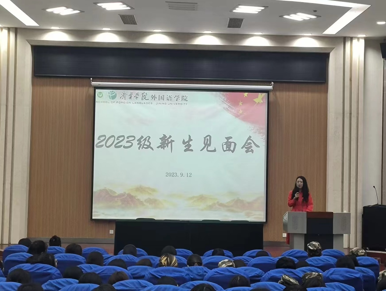 9月12日下午,外国语学院在三号楼报告厅召开2023级新生见面会。外国语学院党委书记陆波、副院长张颖、副书记文灿、全体行政人员、辅导员、教师代表和2023级全体新生参加。