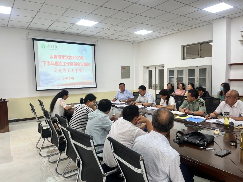 9月14日下午,马克思主义学院在会议室集中学习学校2023年下半年重点工作突破会议精神,院党委书记李效民领学,全体教师参加了集中学习。