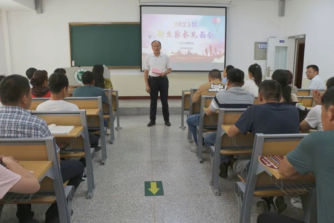 人文与传播学院高度重视、提前谋划迎新工作,持续优化报到流程,并为每位新生发放安全工作温馨提示纸。该院学生会组织开展丰富多彩的迎新活动,通过学生书画作品展和‘传统文化知多少’答题活动,让新生在报到时感受中华优秀传统文化,坚定文化自信。积极搭建家校交流平台,召开新生家长见面会,介绍校史院情,现场答疑解惑,畅通家校共育渠道。
