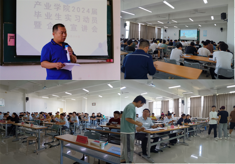 为加强学生对实习的认识与理解,扎实推进2024届毕业生实习就业工作。9月20日上午,产业学院在应用型人才培养基地B2413教室召开了2024届毕业生实习动员暨企业宣讲会。该院副院长张长茂、院长助理安磊、机械教研室主任王首军、毕业班辅导员及机械设计制造及其自动化专业100余名学生参加了会议。