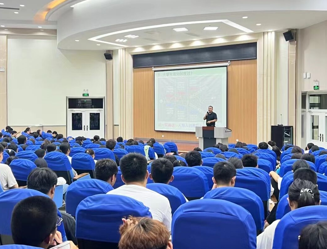9月19日晚,化学化工与材料学院在3号楼报告厅举行入学教育专题报告会。院长刘涛围绕化学化工相关专业发展现状和前景作报告。2023级全体新生参加报告会。