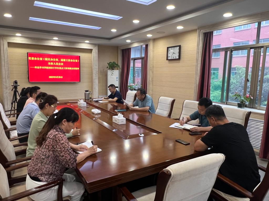 9月25日下午,党委办公室(院长办公室、巡察工作办公室)召开全体人员会议,传达学习学校2023年下半年重点工作突破会议精神。党委(院长)办公室主任张永刚主持会议。