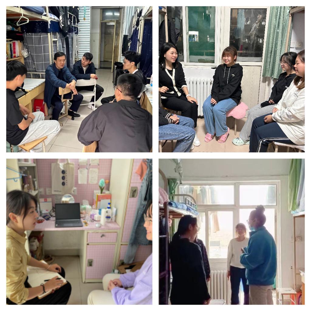 走访过程中,孔国良一行与学生亲切交谈,详细了解同学们新学期返校后的学习生活情况,嘱咐同学们节日里给家人、长辈们道一声祝福,对学生是否已领取月饼等中秋慰问品等情况进行了解,向学生们传递殷切希望和暖心祝福。同时,孔国良一行还深入到毕业生宿舍,详细询问了部分考研学生复习迎考的进度和状态,传达了学院领导和老师对同学们的关心和关爱,勉励考研学生在冲刺阶段要树立充足信心,保持良好心态,劳逸结合,争取取得优异成绩,各年级辅导员针对同学们提出的关于学习、生活和校园安全管理等各方面的问题进行记录并一一解答。