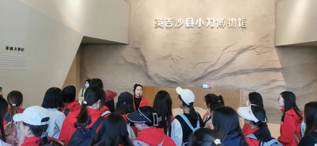 10月1日,亚星在线登录官网援疆支教团临时团支部开展“感受非遗魅力 厚植爱国情怀”主题团日活动,同学们走进博物馆,感受国家级非遗文化遗产——英吉沙小刀的魅力。