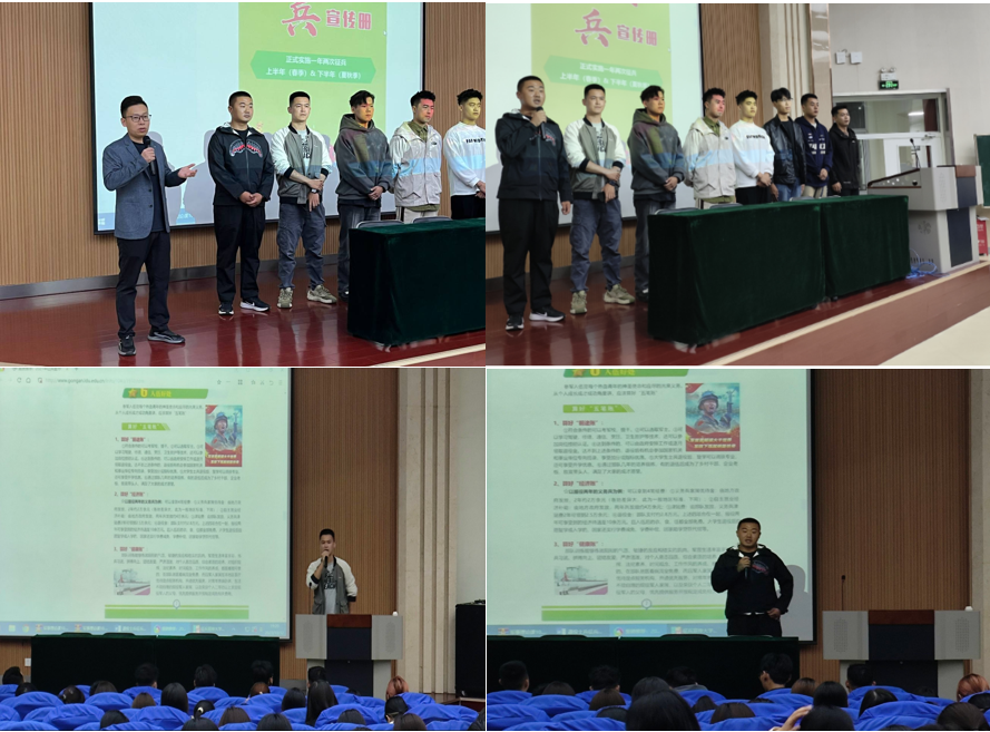 在宣讲会上,徐纪元从多个角度解读、分析了历年的征兵政策,详细介绍了大学生入伍的基础条件、报名参军的基本程序以及入伍期间和退伍后的相关优惠政策,并对大学生参军入伍的政治荣誉、学业保障、经济补贴、就业创业、部队发展、考公考编等几个方面进行重点解读,让同学们对国家、省、市、学校的优惠政策熟知于心,8位退伍学生代表通过对话演绎、个人讲述等形式娓娓道来丰富而充实的军旅生涯故事,生动反映了广大士兵听党话跟党走,牢记职责使命,刻苦钻研打仗本领,立足本职甘于奉献的新时代革命军人风采,一个个真实故事,一幕幕感人画面,一声声坚定誓言,让报告厅的同学们深受触动。在最后环节,退伍学生代表们就同学们普遍关心关注的入伍准备、如何快速适应军营生活、复学后如何尽快适应大学校园等问题进行一一解答。
