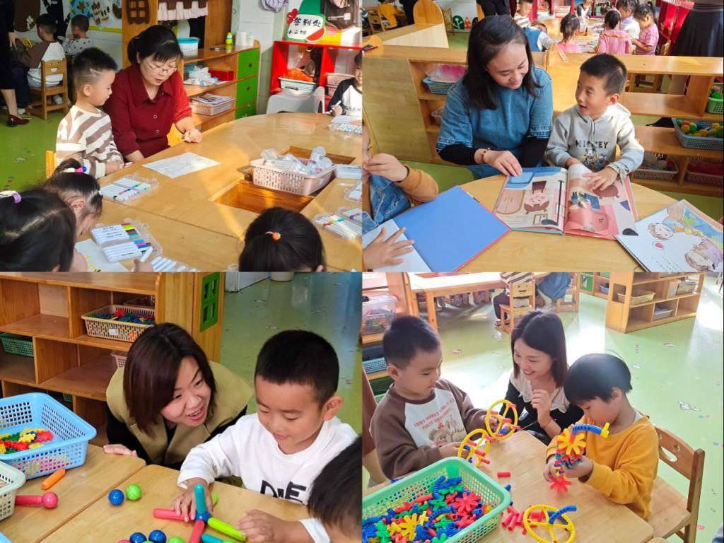 会后,贾英侠一行共同参观了幼儿园,李南、杨柳、张凤、李玫倩几位老师走进班级,走进幼儿,深入课堂参与班级活动。