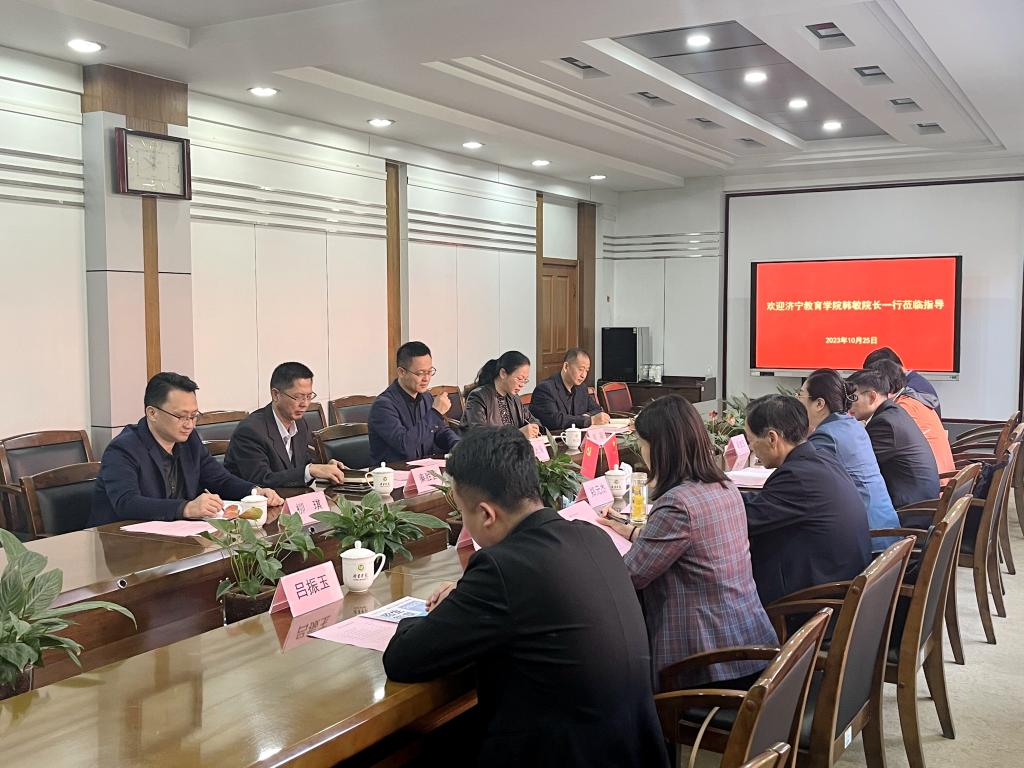 10月25日上午,济宁教育学院党委副书记、院长韩敏、副院长郑元杰一行来我校对接项目合作,教育培训学院院长曹光海、副院长秦胜营、周颖及相关科室负责人参加了合作交流座谈会,会议由曹光海主持。