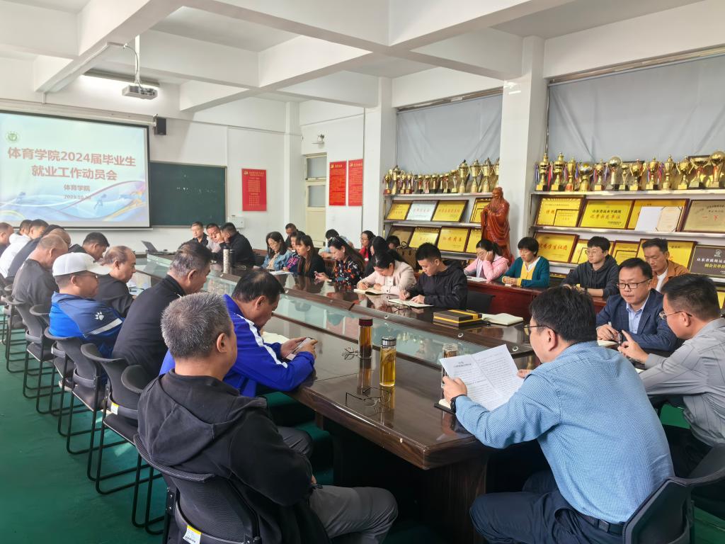 10月30日上午,体育学院在二楼会议室召开2024届毕业生就业工作动员会,全体教职工参加会议。