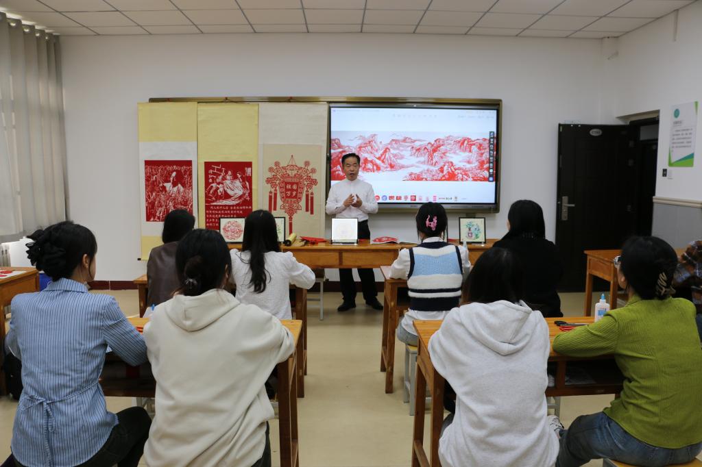为弘扬中华优秀传统文化,提升学生对传统手工工艺的理解、认知与专业技能,10月31日上午,教师教育学院特邀请济宁市非物质文化遗产项目剪纸传承人张跃广与民间手工艺人郑文花开展“非遗文化进课堂”活动。