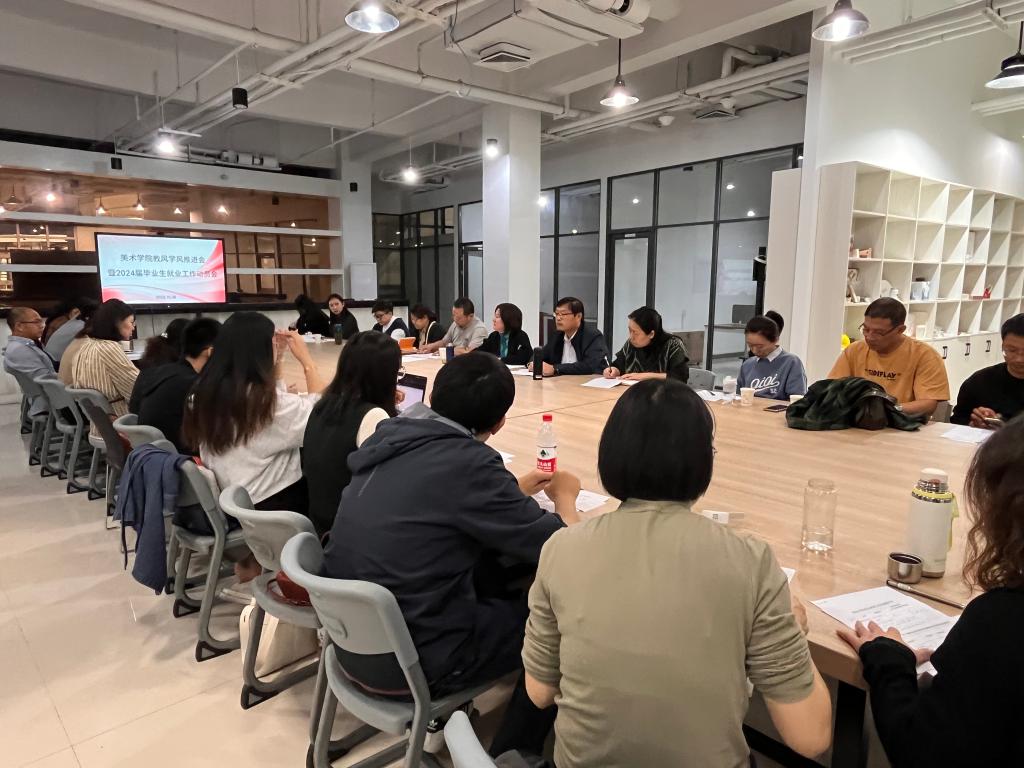 孔瑞传达学习了《美术学院学风建设实施方案》和“学风建设月”活动计划,就前期开展的学风建设调研情况和就业任务各项数据指标逐一进行分析,号召全体教师把营造优良教风学风作为助力毕业生升学深造和提高就业核心竞争力的重要抓手,努力实现毕业生更加充分更高质量就业。各辅导员汇报了班情学情分析情况,加深专业教师对学生、学风和学情的全面了解。与会全体教师就如何推进教风学风建设和毕业生就业工作进行了深入交流和讨论。