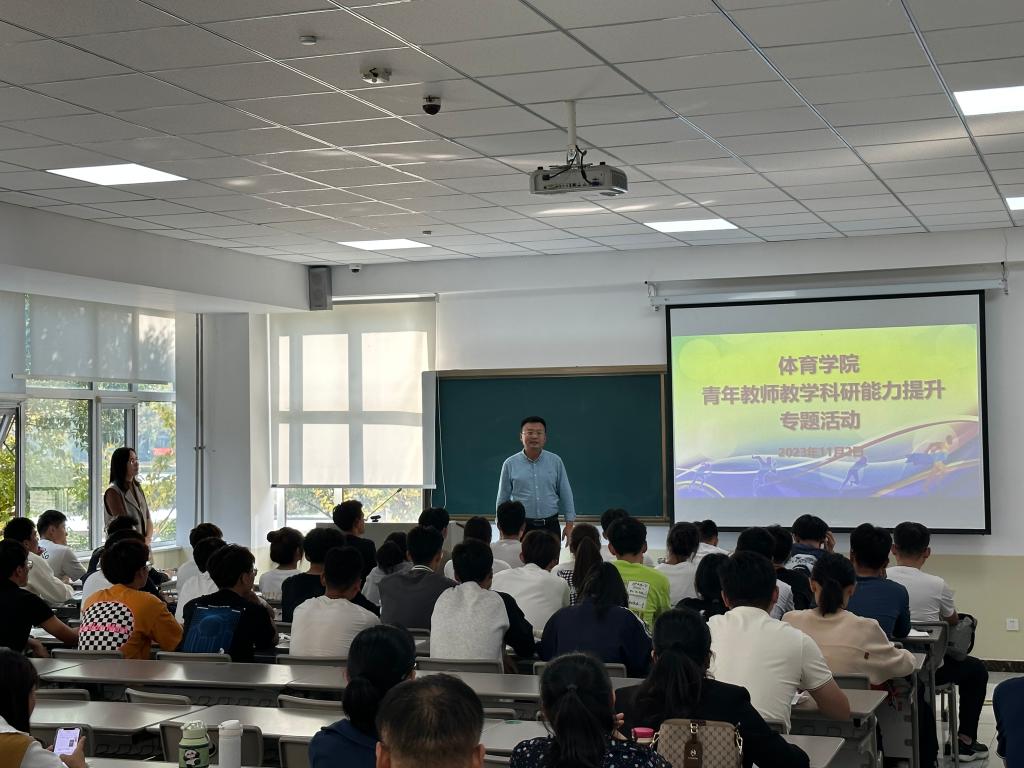 为进一步提升青年教师教学科研能力,推动学院教学科研工作高质量发展,11月2日下午,体育学院在3号楼A101举办青年教师教学科研能力提升专题活动。体育学院院长徐刚主持活动并讲话,全体青年教师参加活动。