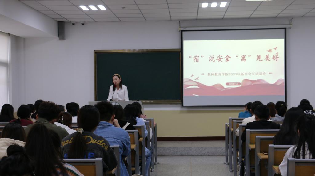 明亮清雅之室,共建和谐新风。为加强学生宿舍管理,创建整洁有序、安全文明的宿舍环境,11月3日下午,教师教育学院在2号楼A211召开2023级新生舍长培训会,学院团委书记徐艳艳、新生辅导员及2023级全体舍长参会。