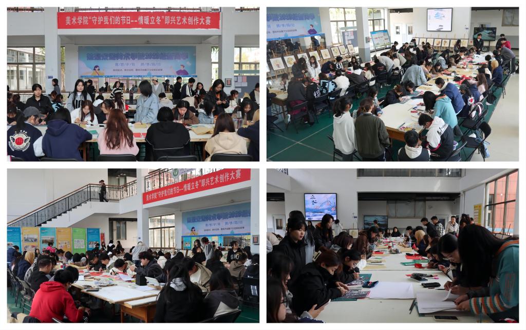 为深入挖掘中华优秀传统文化的人文底蕴和精神内涵,提升学生即兴艺术创作能力,11月8日上午,美术学院在教学楼东大厅举办“守护我们的节日——情暖立冬”即兴艺术创作大赛,100余名学生参加活动。