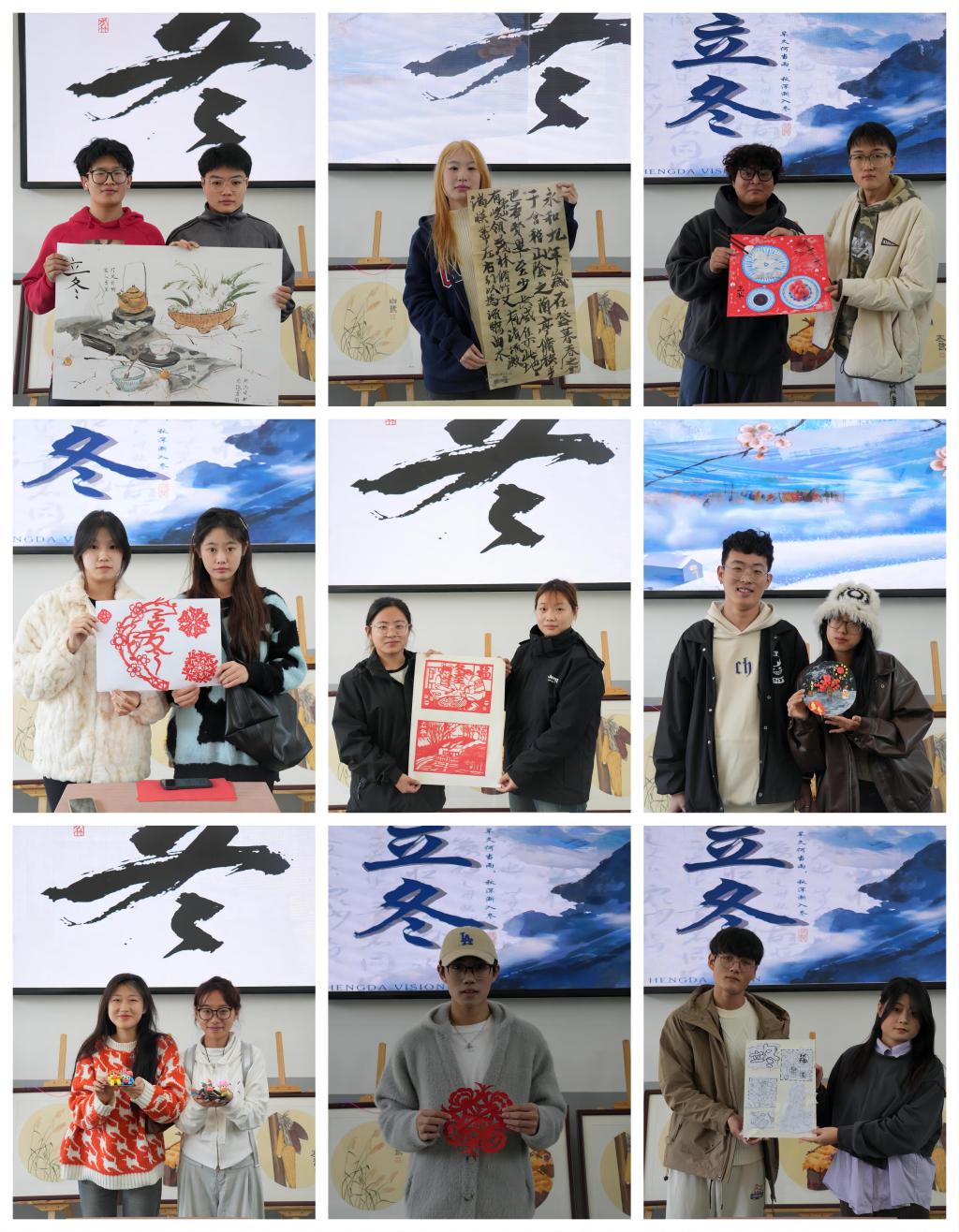 活动现场,学生围绕“冬至”进行即兴书法、绘画、剪纸、手工艺创作,将对中华优秀传统文化的理解、美好生活的热爱、真善美的追求倾注于作品中,生动再现了季节差异、民风习俗、物候特征的衍变,彰显出美术学院学生独有的中华文化内涵和审美风范,表达了青年人对传承中华优秀传统文化、顺应“二十四节气”精神的美好愿景,为寒意渐浓的校园注入了浓情暖意。