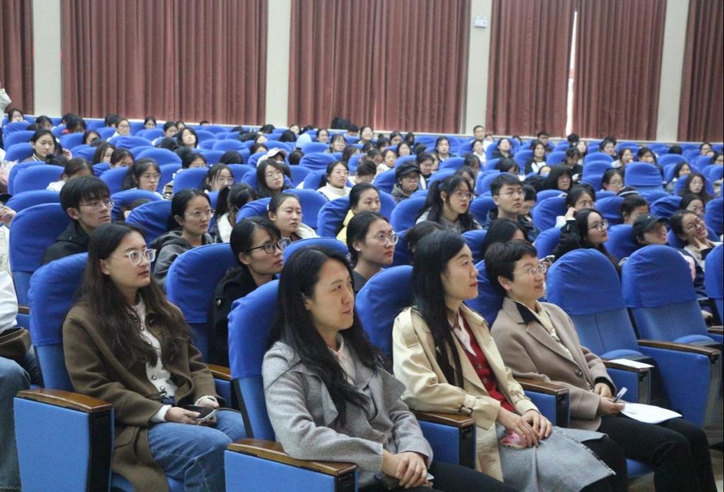 11月9日下午,外国语学院校友、青岛大学外语学院硕士生导师石灿做客校友大讲堂,作了题为“古诗翻译中的叙事与审美”的报告。外国语学院副院长张颖,党委副书记文灿,辅导员田清敏、段明月和2023级全体新生参加了此次活动,报告会由办公室主任闫彩霞主持。